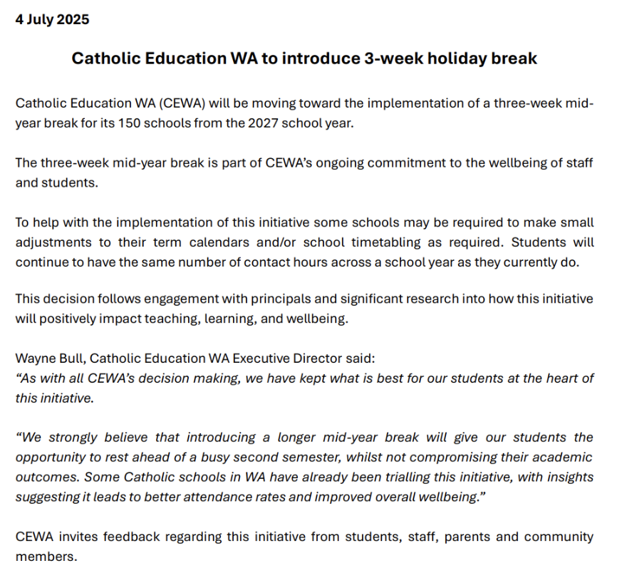 2027 Three-Week Mid-Year Break Information
